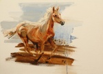 2009Snelle olieverfschets van een Quaterhorse-veulen, verkocht